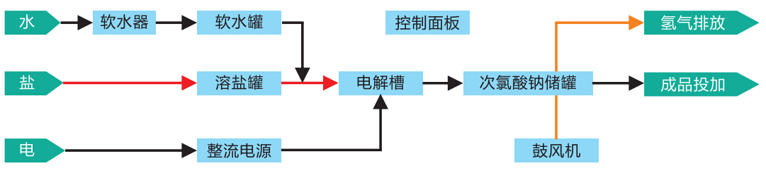 现场电解盐水制备次氯酸钠系统包含以下步骤: